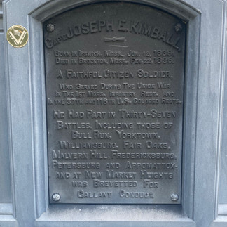 During the US Civil War Joseph served in the 1st Massachusetts Infantry as a Private, joining in May of 1862. He was commissioned 1st then 2nd Lieutenant in the 37th and 116th US Colored Regiments. During his service he took part in 37 battles, many of which are written on his gravestone. He was breveted Captain for gallant service at New Market Heights.